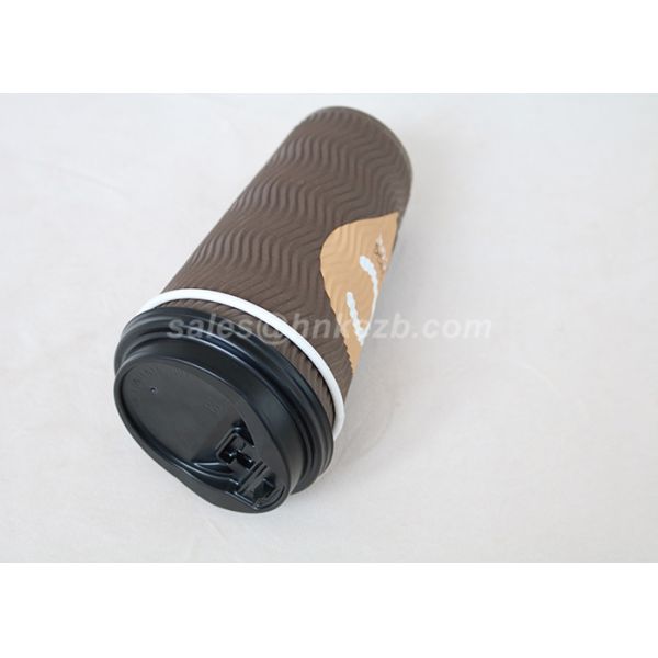 20oz Black Printing Ripple Paper Cups Corrugated Coffee Cups With Plastic Lids Images |